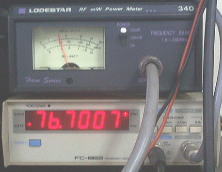 出力と送信周波数(76.7MHz設定時)